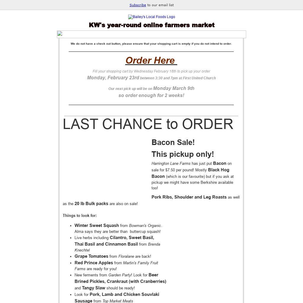 Harrington Lane Farms has just put Bacon on sale for $7.50 per pound! Mostly Black Hog Bacon (which is our favourite) but if you ask at pickup we might have some Berkshire available too!