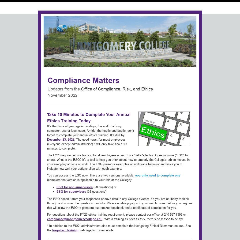 To support employees in answering freely, the College has engaged a third-party research partner, Benesch, to administer the survey and assure anonymity.