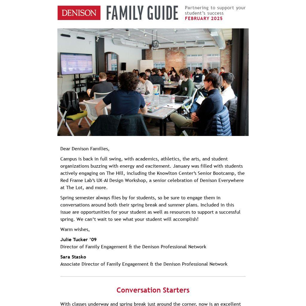 Keep up with everything at Denison via the links below and by following us on our social platforms. As always, thank you for partnering with Denison to support your student’s success.