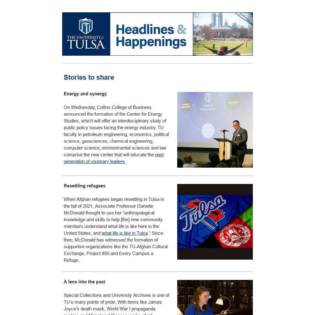 When Afghan refugees began resettling in Tulsa in the fall of 2021, Associate Professor Danielle McDonald thought to use her “anthropological knowledge and skills to help [the] new community members understand what life is like here in the United States, and what life is like in Tulsa.” Since then, McDonald has witnessed the formation of supportive organizations like the TU-Afghan Cultural Exchange, Project 850 and Every Campus a Refuge.