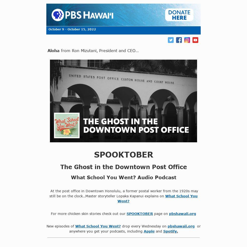 Downtown Honolulu is busy in different ways. During business hours, King and Bishop Streets are alive with foot and vehicular traffic and nonstop activity. At night, it is also quite busy, but with a very different type of traffic and activity – the spiritual type. One area in particular, at the corner of Richards and Merchant Streets, is extremely active, some would even say, haunted. We will give you the spooktacular details on the next “What School You Went?” audio podcast.