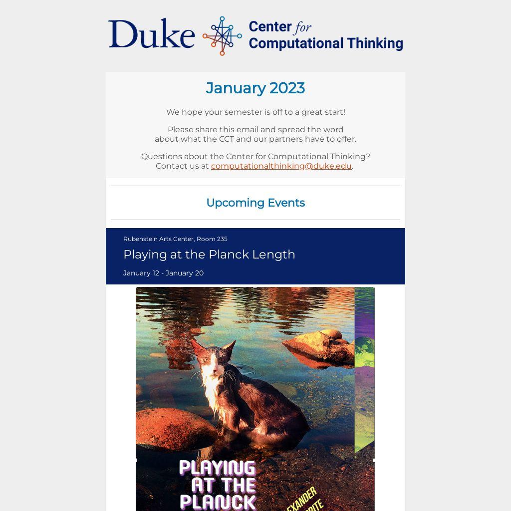 You're receiving this email because you participated in a Duke +DataScience learning experience or have expressed interest in the CCT.