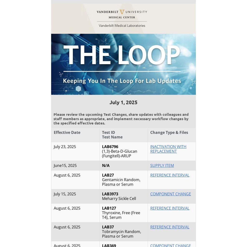| June 26, 2025 | Histocompatibility and Immunogenetics Laboratory (HIL) Testing