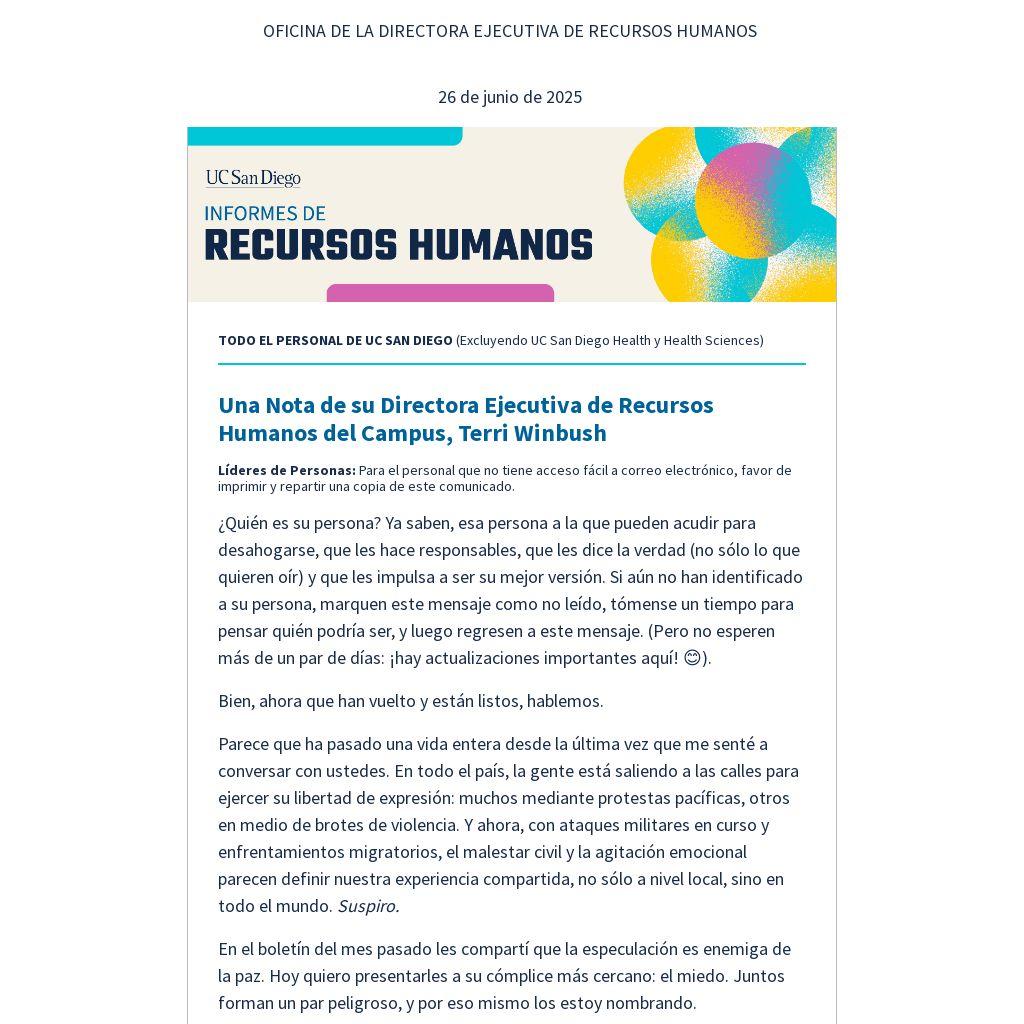 Parece que ha pasado una vida entera desde la última vez que me senté a conversar con ustedes. En todo el país, la gente está saliendo a las calles para ejercer su libertad de expresión: muchos mediante protestas pacíficas, otros en medio de brotes de violencia. Y ahora, con ataques militares en curso y enfrentamientos migratorios, el malestar civil y la agitación emocional parecen definir nuestra experiencia compartida, no sólo a nivel local, sino en todo el mundo. Suspiro.