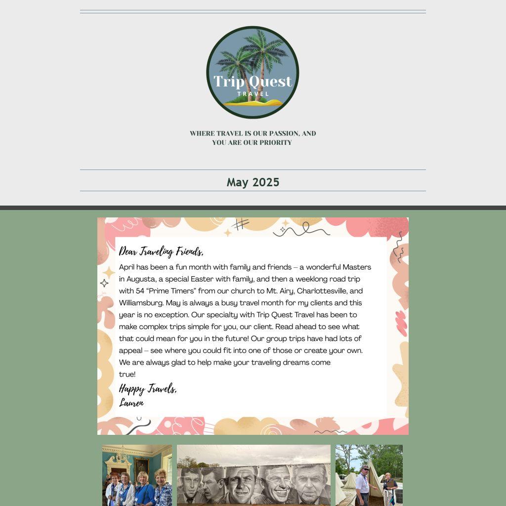 I am Lauren Williams, owner of Trip Quest Travel Services for the past ten years. Moving from three decades in education to becoming a travel consultant has caused me to shift from “The Doctor of Education” to “The Doctor of Travel.” My clients are often just like me – they want a rejuvenating vacation that teaches them about the world and the cultures around them. I love beautiful scenery, exploring new places, and learning something new every day! Aside from travel, I stay busy with my husband, Steve, who has joined me in the travel business, and our four children and thirteen grandchildren. Being active in the church and in our community feeds our souls as well. I love to play pickleball and bridge when I am not helping clients plan that perfect trip! Because our world is so much smaller now, I am happy to work with clients wherever they might live…but by referral only. Let me know if you have friends or family who would like to be added to my monthly newsletter list! Also, let me know if there is something you’d like to know more about!
