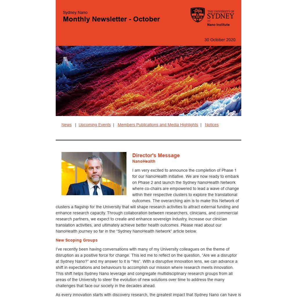 We will be launching the Sydney NanoHealth Network and other new initiatives at the Sydney Nano town hall for our internal community next week. I hope you can join us on zoom.