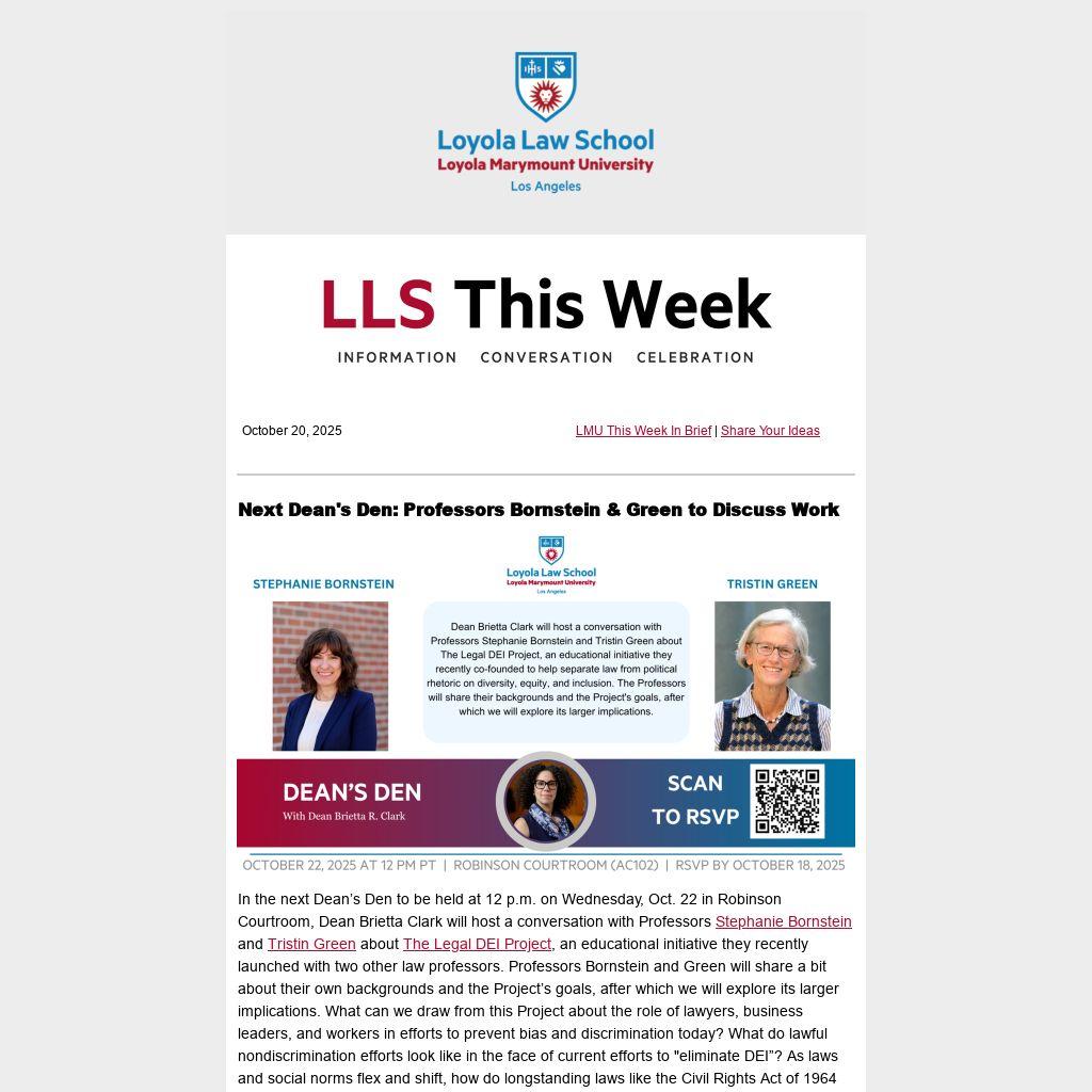 The Policing L.A. Forum, part of the Loyola Anti-Racism Center, will host a panel at 12 p.m. on Friday, Nov. 7 in Burns Lounge as they look at "10 Years of Failed Law Enforcement Oversight in L.A. County." Panelists will include Professors Eric Miller and Sean Kennedy; L.A. County Inspector General Max Huntsman; "Check the Sheriff" Co-Chair Stephanie Luna; Chief Deputy L.A. County Inspector General Dara Williams; and Miriam Aroni Krinsky, executive director, Fair and Just Prosecution.