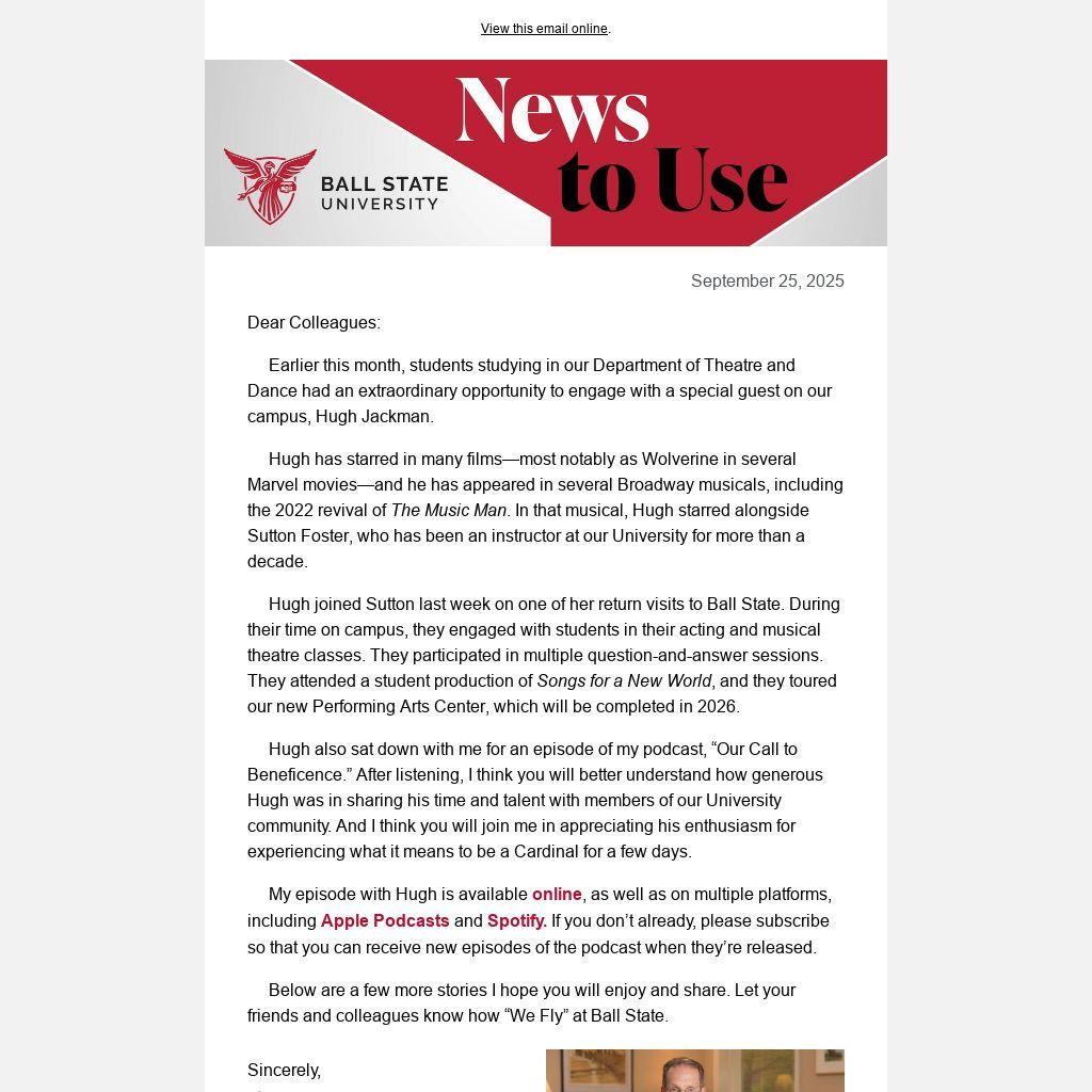Copyright © 2025 Ball State University, All rights reserved. News and updates from Ball State's president.