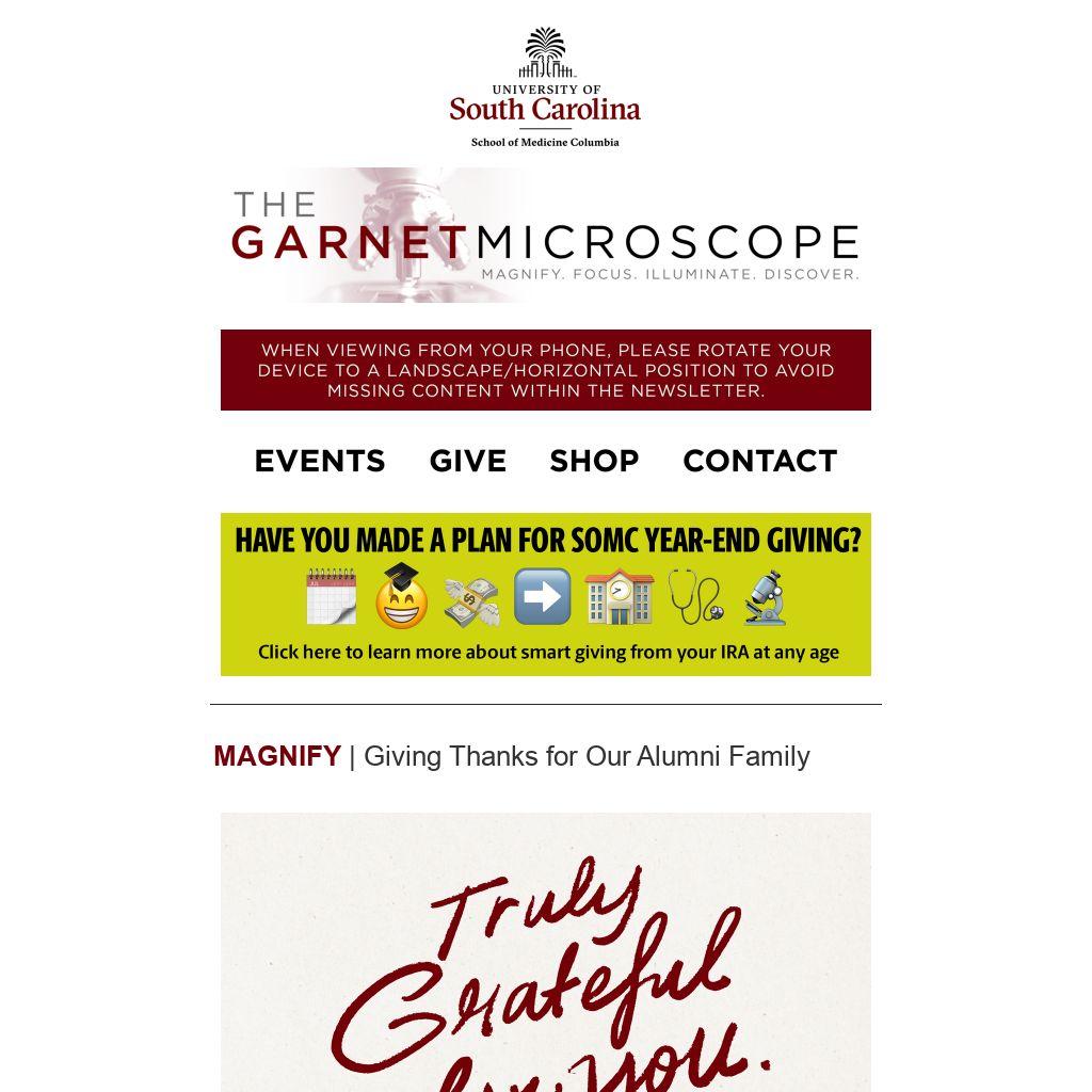 This season reminds us to pause and give thanks, and we are deeply grateful for the ways you continue to carry forward the legacy of the School of Medicine Columbia. Your dedication, achievements and generosity enrich our community and inspire the next generation of health professionals.Â