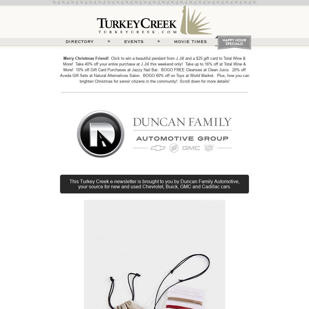 Merry Christmas Friend! Click to win a beautiful pendant from J.Jill and a $25 gift card to Total Wine & More! Take 40% off your entire purchase at J.Jill this weekend only! Take up to 16% off at Total Wine & More! 10% off Gift Card Purchases at Jazzy Nail Bar. BOGO FREE Cleanses at Clean Juice. 20% off Aveda Gift Sets at Natural Alternatives Salon. BOGO 60% off on Toys at World Market. Plus, how you can brighten Christmas for senoir citizens in the community! Scroll down for more details!