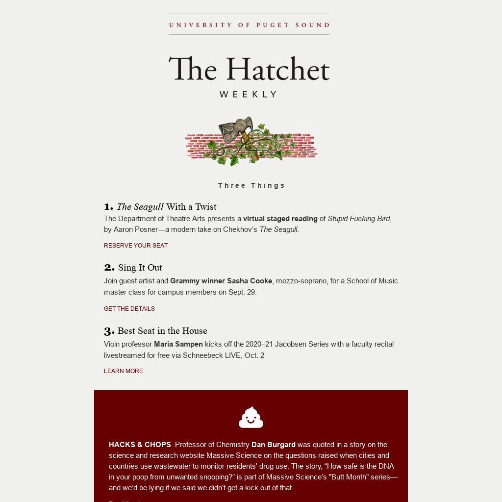 | SPIDER SEASON With late summer and early fall come spiders in the Pacific Northwest. Though you may think they’re making their presence known in anticipation of Halloween and other fall festivities, the truth is it’s mating season. As the weather cools, the influx of indoor spiders will give way to the “orb spiders” outdoors, which create the wheel-shaped webs we’re so often in danger of walking into on campus. Keep your eyes peeled for the web slingers—like this one—and their work, snapped just outside a campus house.