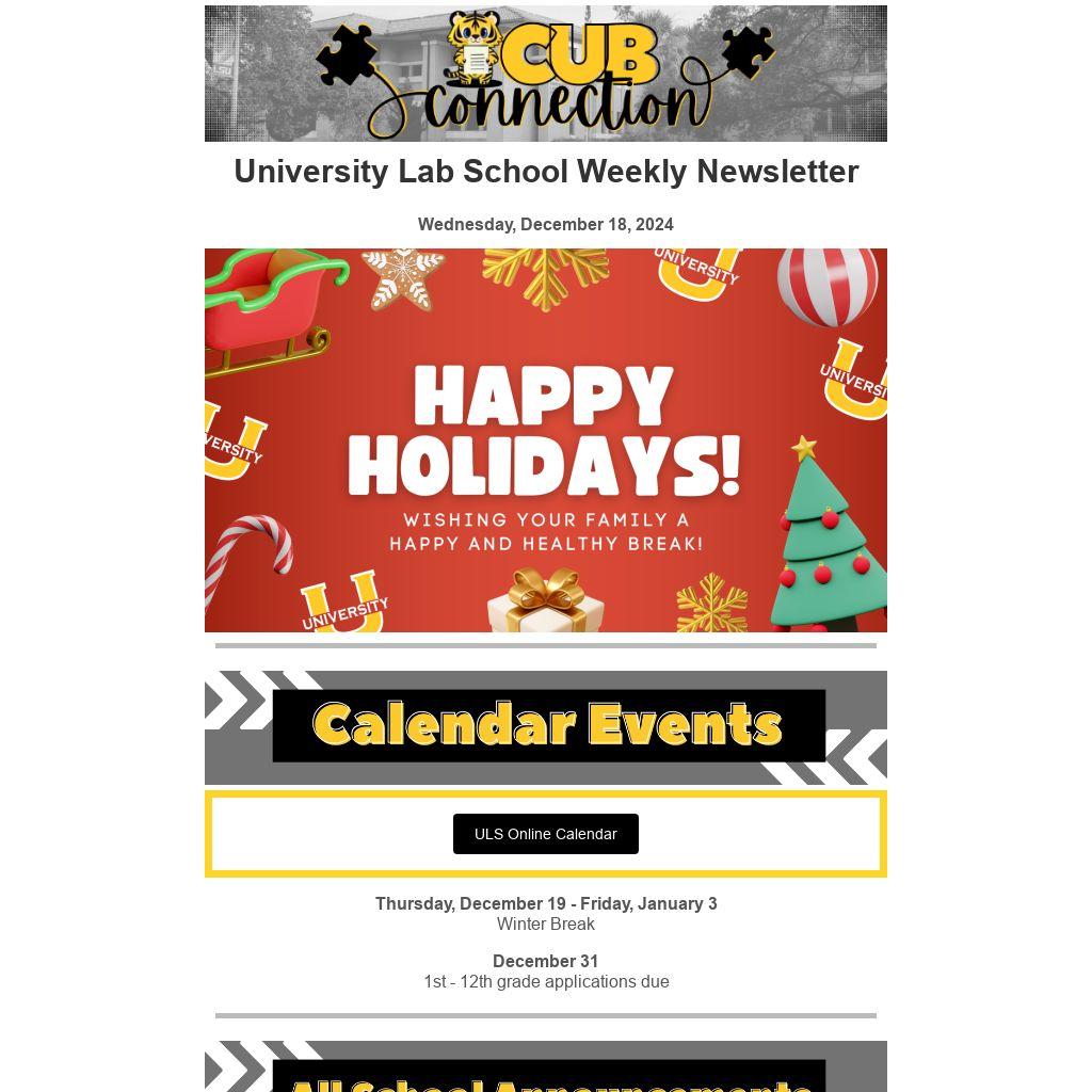 The holiday season is a time for gratitude and togetherness. I am grateful for the dedication of our teachers and staff, the enthusiasm and resilience of our students, and the unwavering support of our families. It is through this collaboration that we create a nurturing environment where each child can thrive academically, socially, and emotionally.