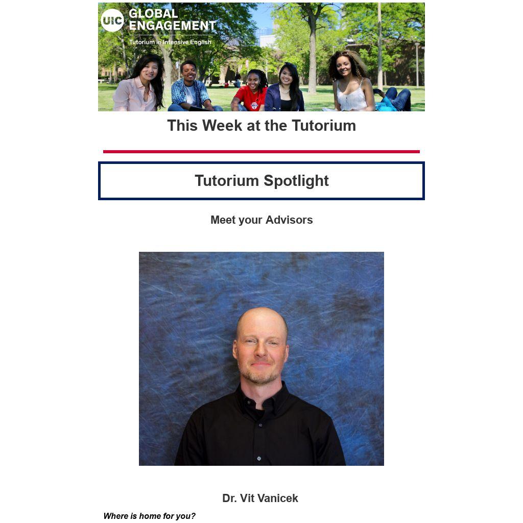 - Also, you might have new classmates! A group of new students will join our program after the Midterm break. Please welcome these new students to your classes and share your knowledge of life at the Tutorium, UIC, and Chicago.
