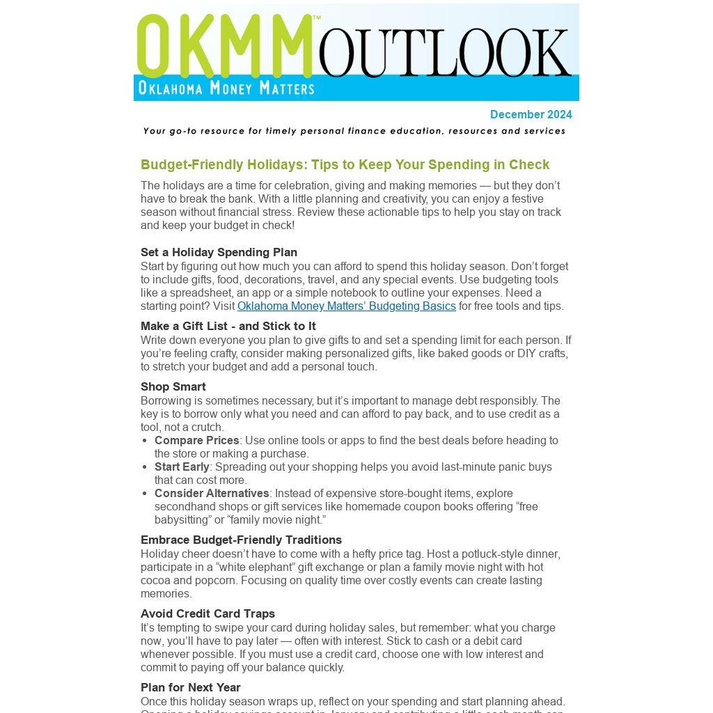 For more holiday budgeting tips and resources, visit Oklahoma Money Matters or check out our free financial tools. A little planning today can help you enjoy the season without the stress tomorrow!