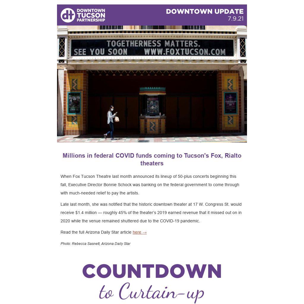 Late last month, she was notified that the historic downtown theater at 17 W. Congress St. would receive $1.4 million — roughly 45% of the theater’s 2019 earned revenue that it missed out on in 2020 while the venue remained shuttered due to the COVID-19 pandemic.