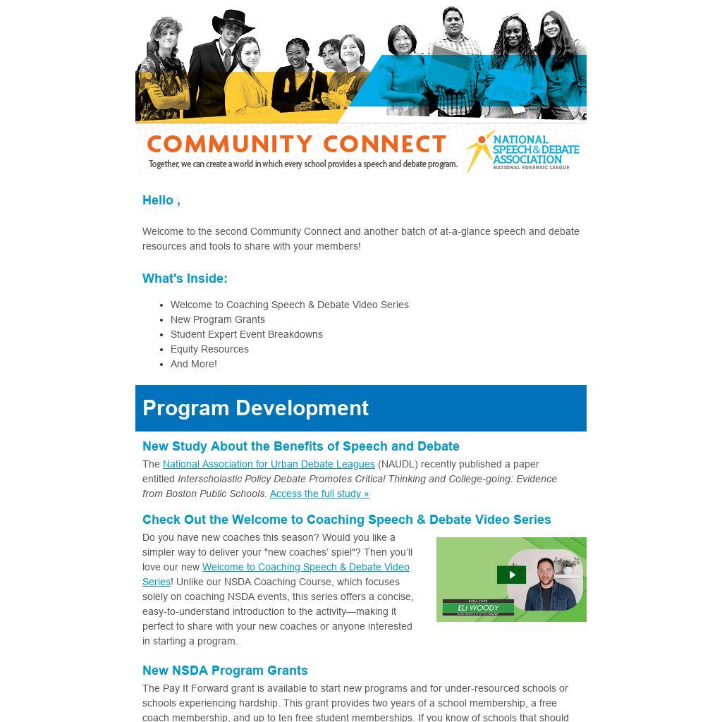 Welcome to the second Community Connect and another batch of at-a-glance speech and debate resources and tools to share with your members!
