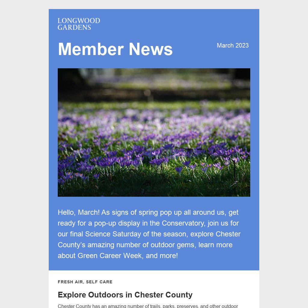 Hello, March! As signs of spring pop up all around us, get ready for a pop-up display in the Conservatory, join us for our final Science Saturday of the season, explore Chester County’s amazing number of outdoor gems, learn more about Green Career Week, and more!
