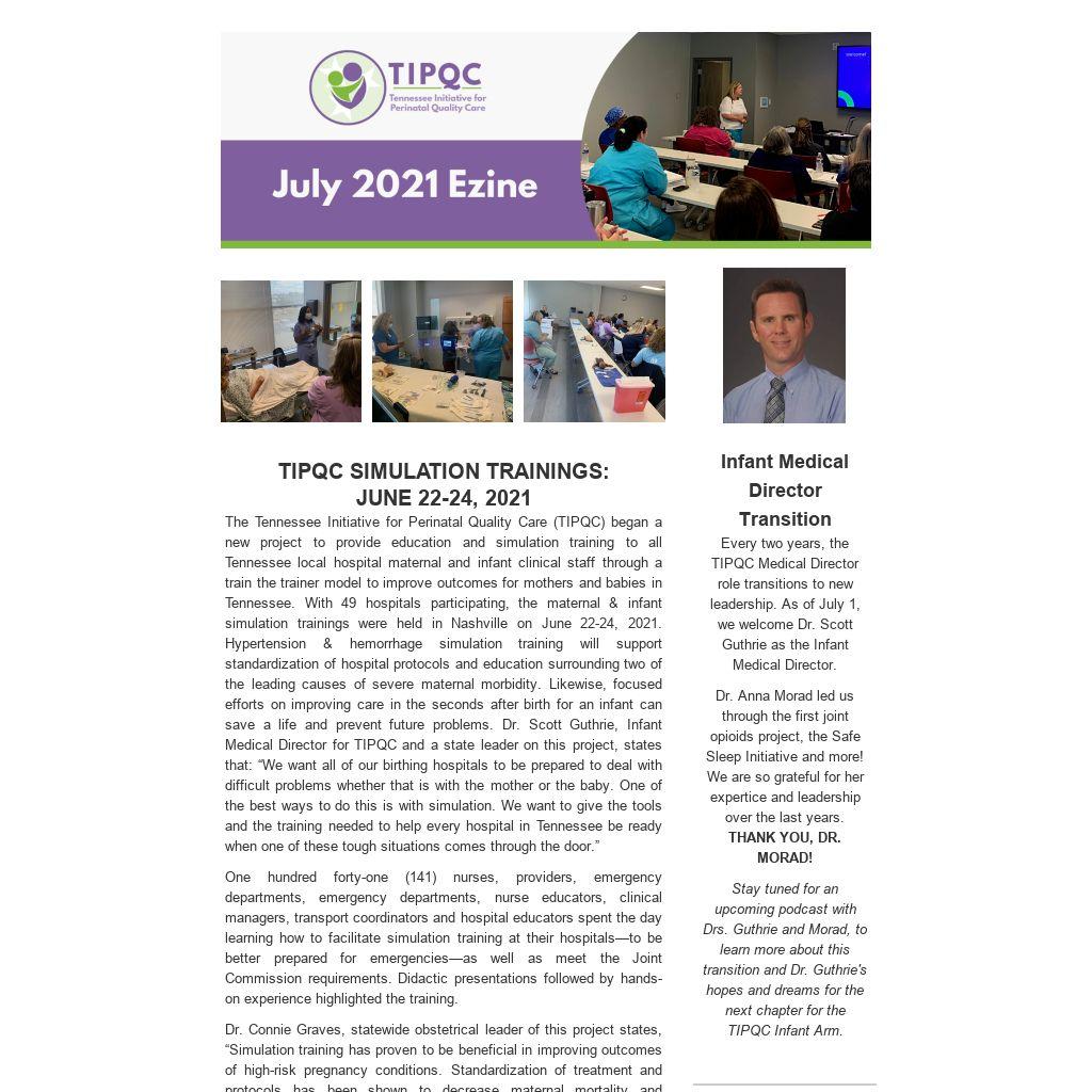 The Tennessee Initiative for Perinatal Quality Care (TIPQC) began a new project to provide education and simulation training to all Tennessee local hospital maternal and infant clinical staff through a train the trainer model to improve outcomes for mothers and babies in Tennessee. With 49 hospitals participating, the maternal & infant simulation trainings were held in Nashville on June 22-24, 2021. Hypertension & hemorrhage simulation training will support standardization of hospital protocols and education surrounding two of the leading causes of severe maternal morbidity. Likewise, focused efforts on improving care in the seconds after birth for an infant can save a life and prevent future problems. Dr. Scott Guthrie, Infant Medical Director for TIPQC and a state leader on this project, states that: “We want all of our birthing hospitals to be prepared to deal with difficult problems whether that is with the mother or the baby. One of the best ways to do this is with simulation. We want to give the tools and the training needed to help every hospital in Tennessee be ready when one of these tough situations comes through the door.”