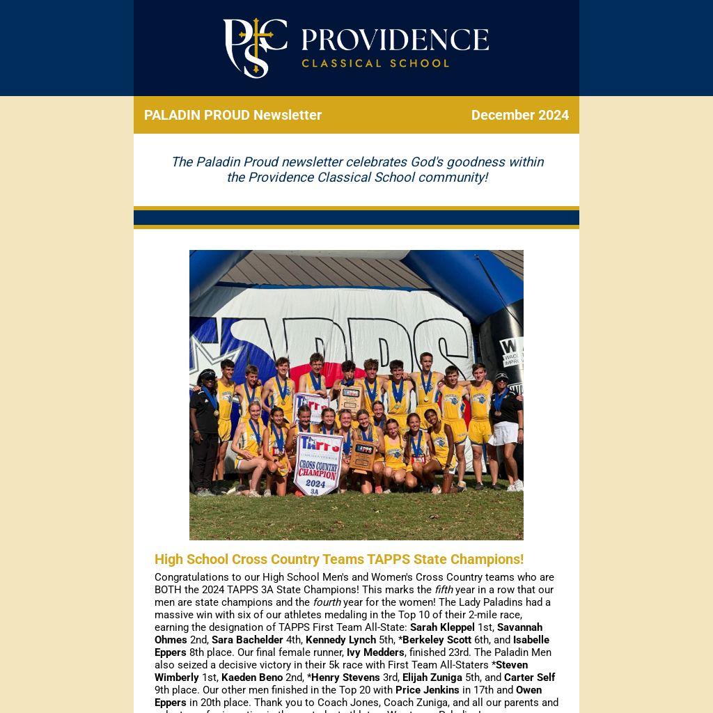 The Paladin Proud newsletter celebrates God's goodness within the Providence Classical School community! |