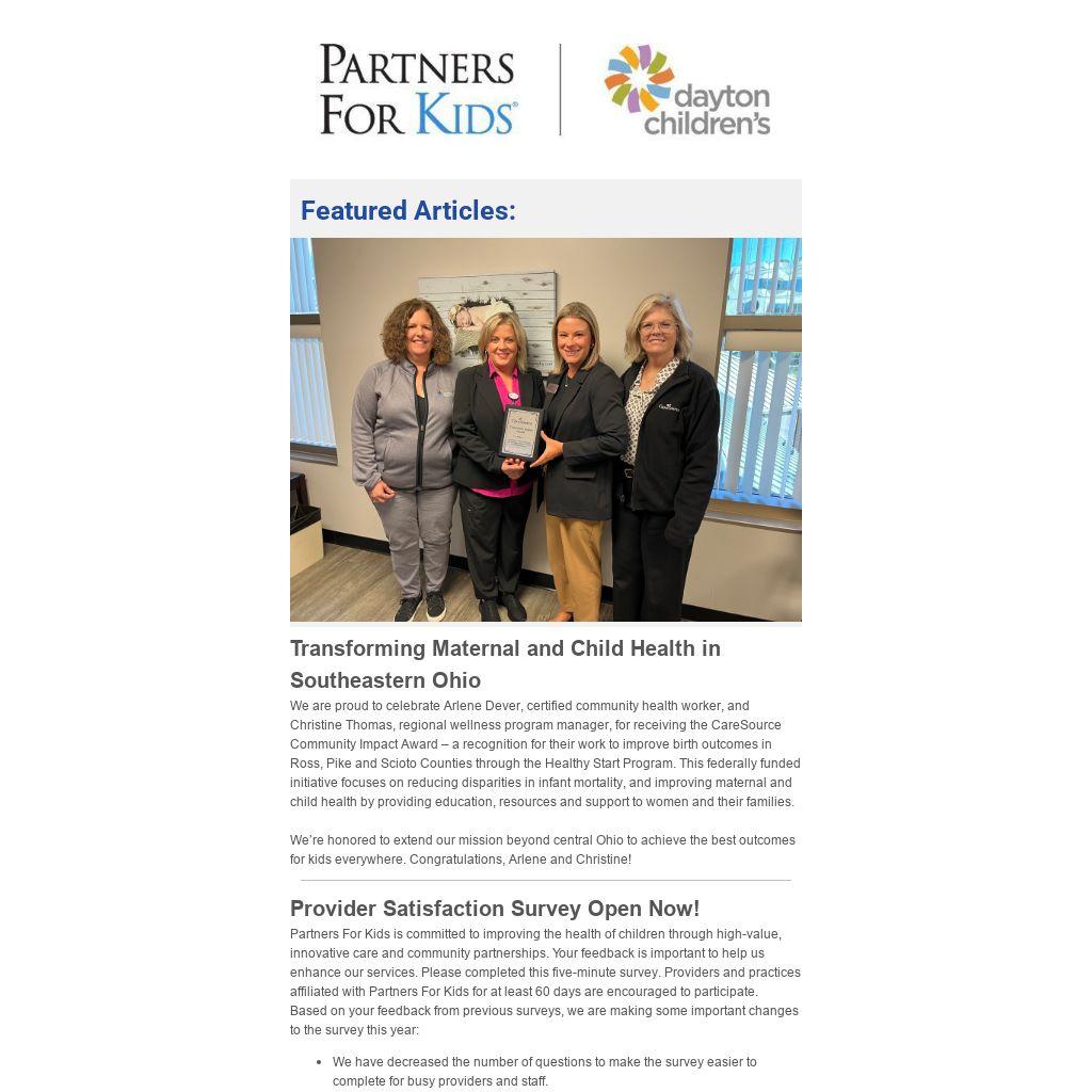 If you have questions regarding any of the information in this newsletter or suggestions regarding newsletter content that would be useful to your practice, please contact us at Email: PFKProRelations@childrensdayton.org.