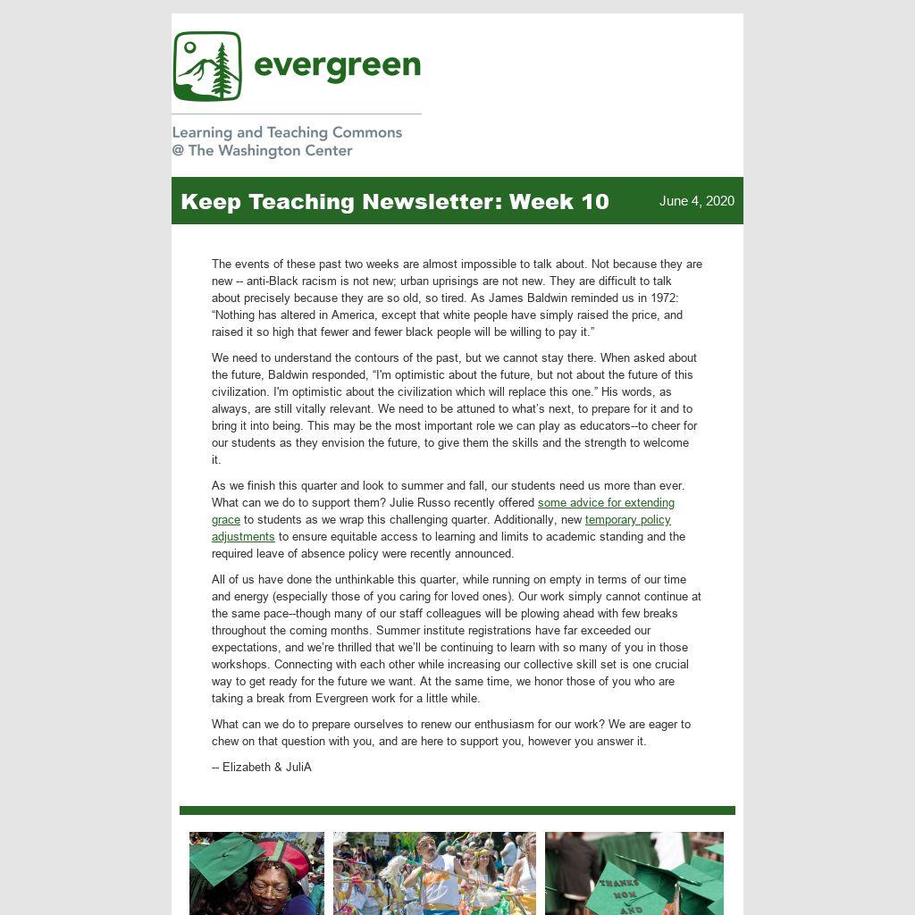 As we finish this quarter and look to summer and fall, our students need us more than ever. What can we do to support them? Julie Russo recently offered some advice for extending grace to students as we wrap this challenging quarter. Additionally, new temporary policy adjustments to ensure equitable access to learning and limits to academic standing and the required leave of absence policy were recently announced.
