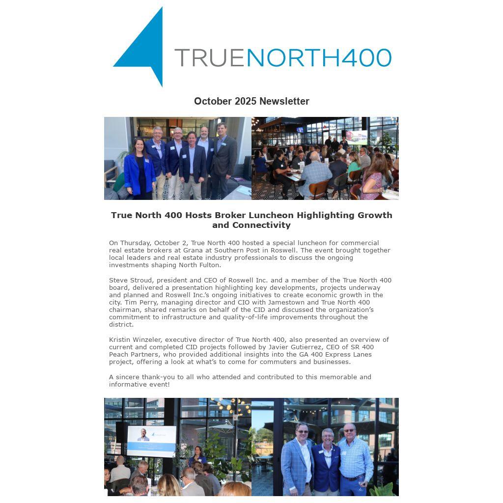 On Thursday, October 2, True North 400 hosted a special luncheon for commercial real estate brokers at Grana at Southern Post in Roswell. The event brought together local leaders and real estate industry professionals to discuss the ongoing investments shaping North Fulton.