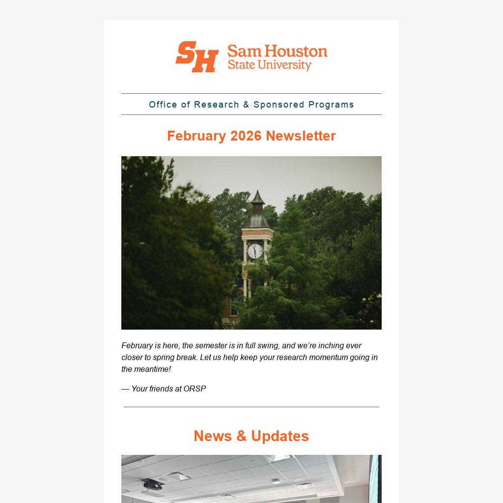 Do you have a project, event, or success story you'd like to share with the SHSU community? We're always looking to highlight the incredible work happening across campus. Submit a content request form and your story could be featured in our next newsletter!