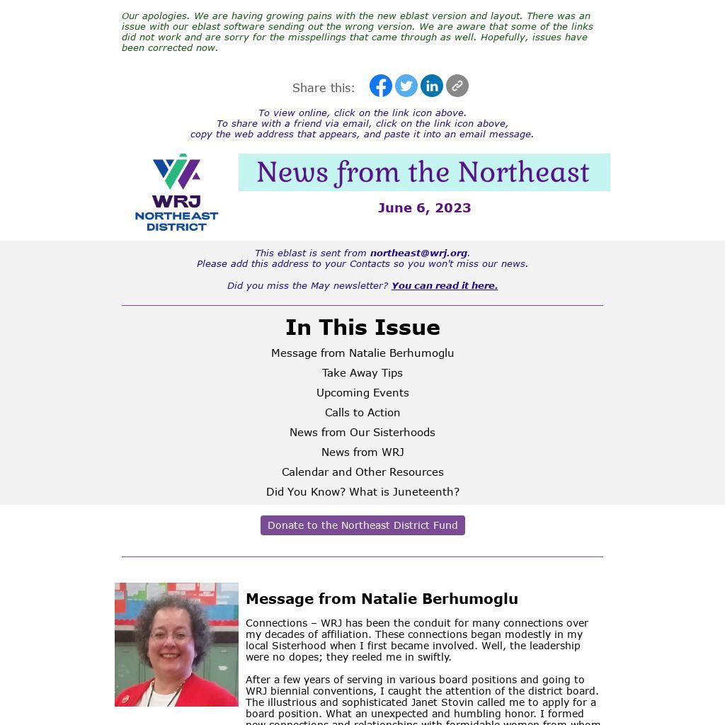 This eblast is sent from northeast@wrj.org.