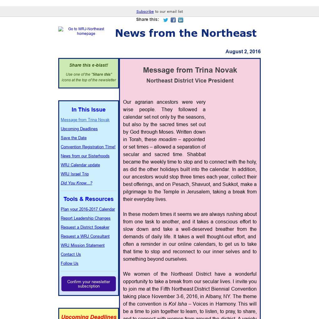 Using Gmail's Tab Layout? Drag this message to your Primary inbox so you won't miss any e‑blasts from WRJ Northeast District