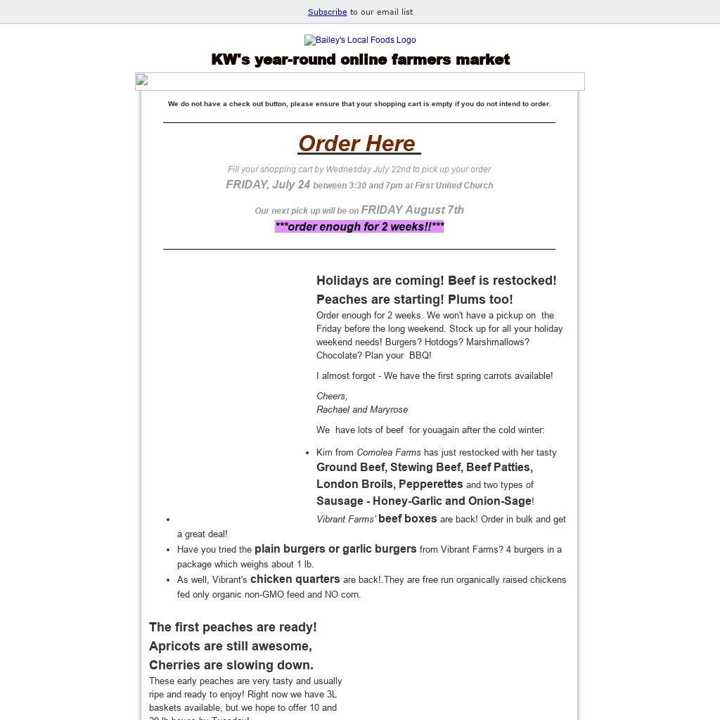 Fill your shopping cart by Wednesday July 22nd to pick up your order