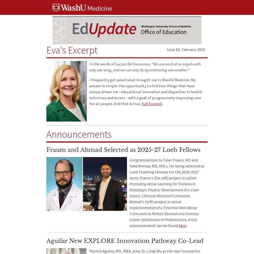 I frequently get asked what brought me to WashU Medicine. My answer is simple: the opportunity to link two things that have always driven me - educational innovation and disparities in health outcomes and access - with a goal of progressively improving care for all people. And that is true. Full Excerpt.