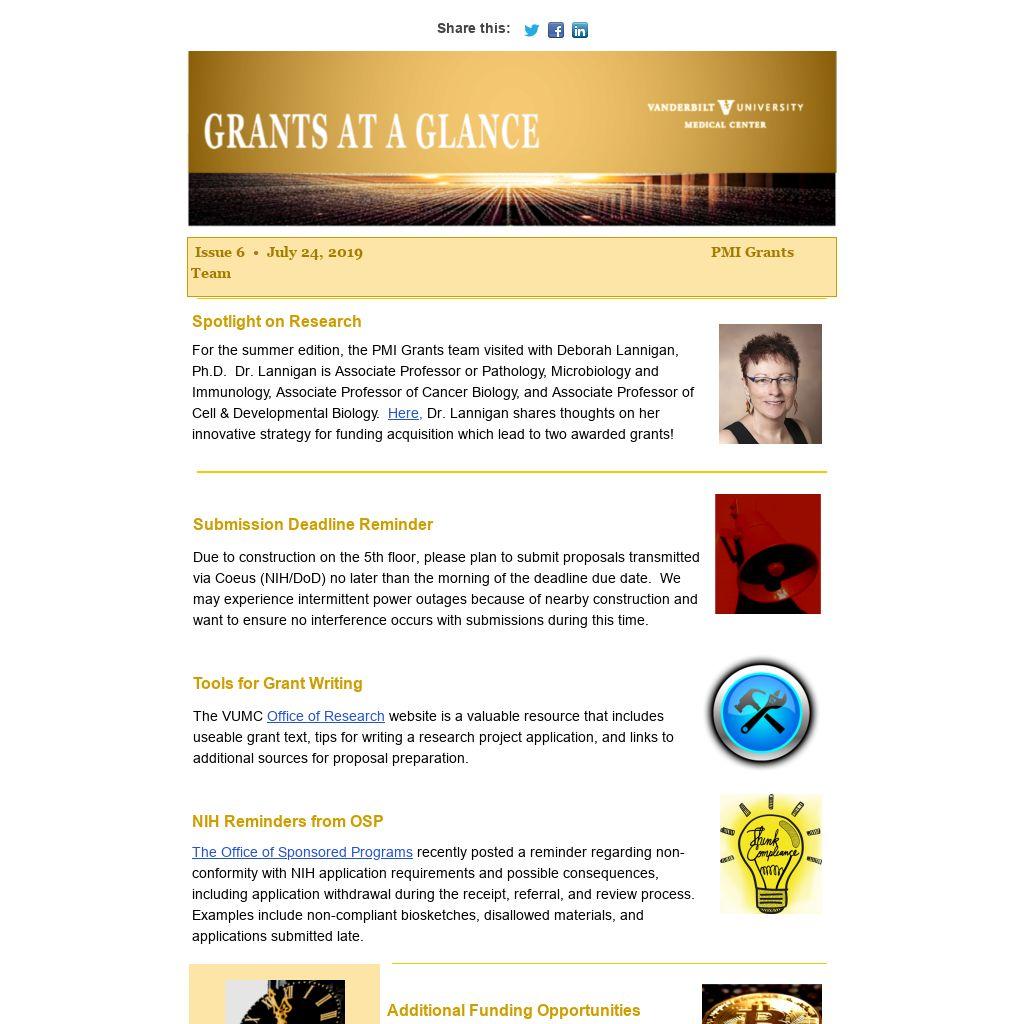 For the summer edition, the PMI Grants team visited with Deborah Lannigan, Ph.D. Dr. Lannigan is Associate Professor or Pathology, Microbiology and Immunology, Associate Professor of Cancer Biology, and Associate Professor of Cell & Developmental Biology. Here, Dr. Lannigan shares thoughts on her innovative strategy for funding acquisition which lead to two awarded grants!