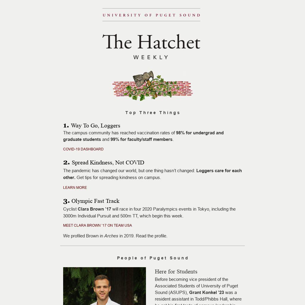 Before becoming vice president of the Associated Students of University of Puget Sound (ASUPS), Grant Konkel ’23 was a resident assistant in Todd/Phibbs Hall, where he got his first taste of campus leadership. Originally from Oakland, Calif., Konkel is a double major in politics and government and international political economy, and he spends his free time playing spikeball and working as a soccer referee. Konkel has spent the summer learning about the business side of ASUPS and is excited to help student-run clubs access funding through Puget Sound’s student government to expand their reach. “We have big goals for ASUPS this year,” he says. “We’re excited to welcome students back to campus with a three-day LogJam!, which we hope will be beneficial for the whole student body.”