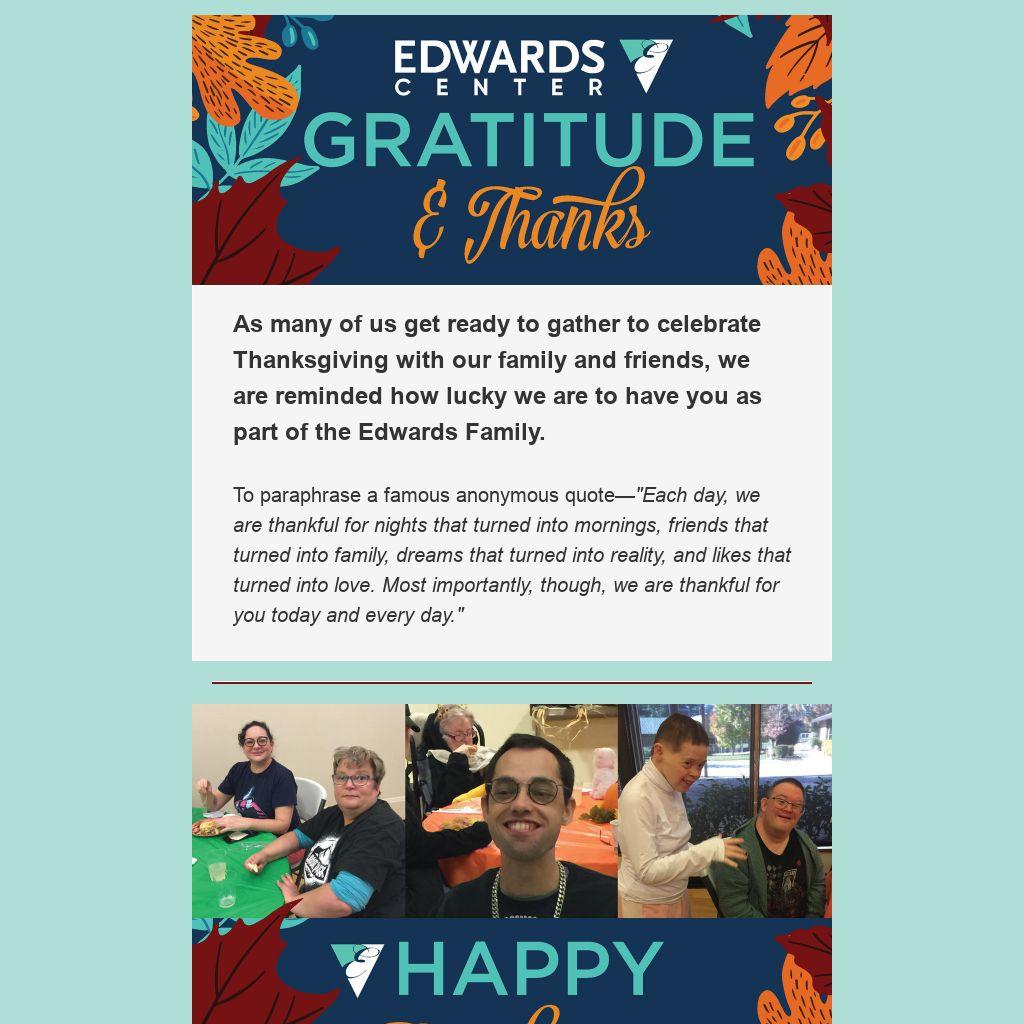 As many of us get ready to gather to celebrate Thanksgiving with our family and friends, we are reminded how lucky we are to have you as part of the Edwards Family.