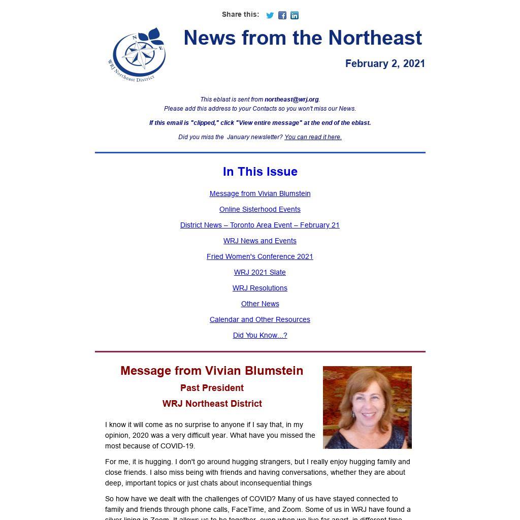This eblast is sent from northeast@wrj.org.
