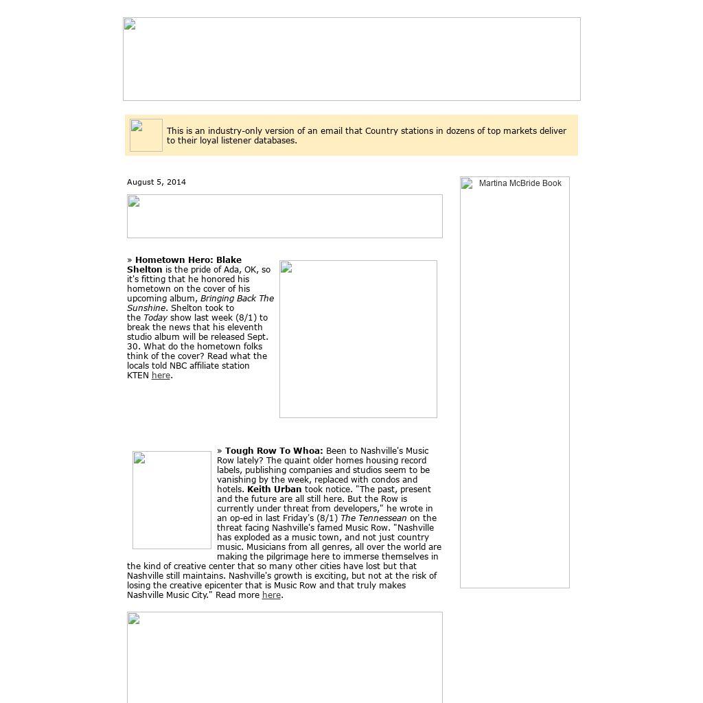 Birthdays/h2> Tuesday (8/5): Terri Clark. Wednesday (8/6): Mark Dufresne (Confederate Railroad), Peggy and Patsy Lynn, Lisa Stewart. Thursday (8/7): Rodney Crowell, Raul Malo (The Mavericks), Michael Peterson, B.J. Thomas. On TV Tuesday (8/5): CMA Music Festival: Country’s Night to Rock (ABC); Jake Owen, Chelsea Lately (E!); Jake Owen, Jimmy Kimmel Live (ABC). Wednesday (8/6): Chase Rice, Late Night With Seth Myers, (NBC). This Week's Album Releases Sunny Sweeney Provoked (Aunt Daddy/Thirty Tigers) Sweeney's third studio album chronicles the singer's coming to terms with the mistakes she's made and the recovery the last few years have brought her. She co-wrote 11 of the 13 songs. Billy Joe Shaver Long In The Tooth (Lightning Rod/Thirty Tigers) Shaver's first new album in more than six years features a duet with Willie Nelson, "Hard To Be An Outlaw." Additional special guests are Leon Russell, Tony Joe White and Shawn Camp. Shooter Jennings Don't Wait Up (For George) (Black Country Rock/BCR Media/Thirty Tigers) Jennings throws the spotlight on his family friend the late George Jones in this album of Jones classics and originals. Upcoming Album Releases Aug. 19 Nashville Outlaws: A Tribute To Mötley Crüe Chase Rice Ignite The Night Randy Travis Influence Vol. 2: The Man I Am Various Look Again To The Wind: Johnny Cash's Bitter Tears Revisited Joel Crouse, Even The River Runs Sarah Dunn Band, You Or The Whiskey Aug. 26 Brad Paisley Moonshine In The Trunk Brushville Self-Titled Lenny Cooper The Grind Sep. 2 Terri Clark Some Songs |
