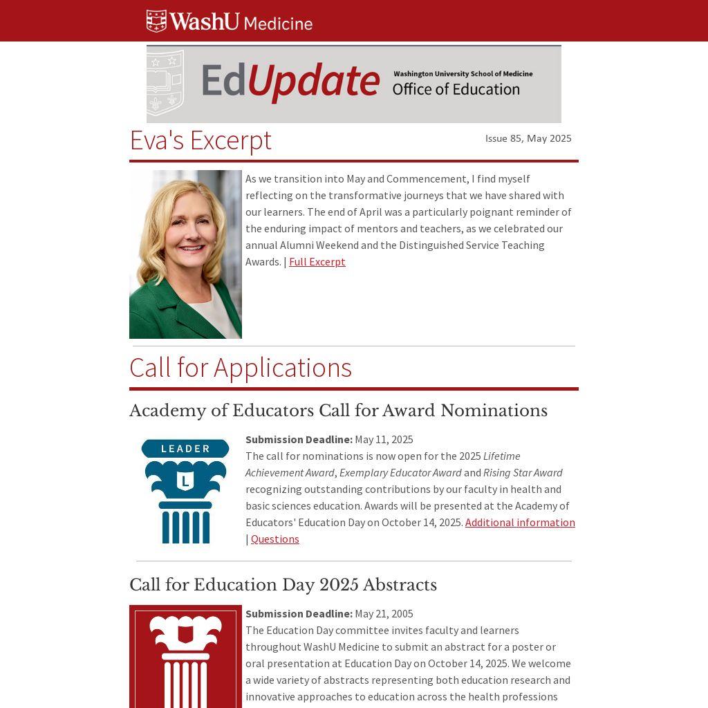 | WashU Internal Application Deadline: Monday, June 2, 2025