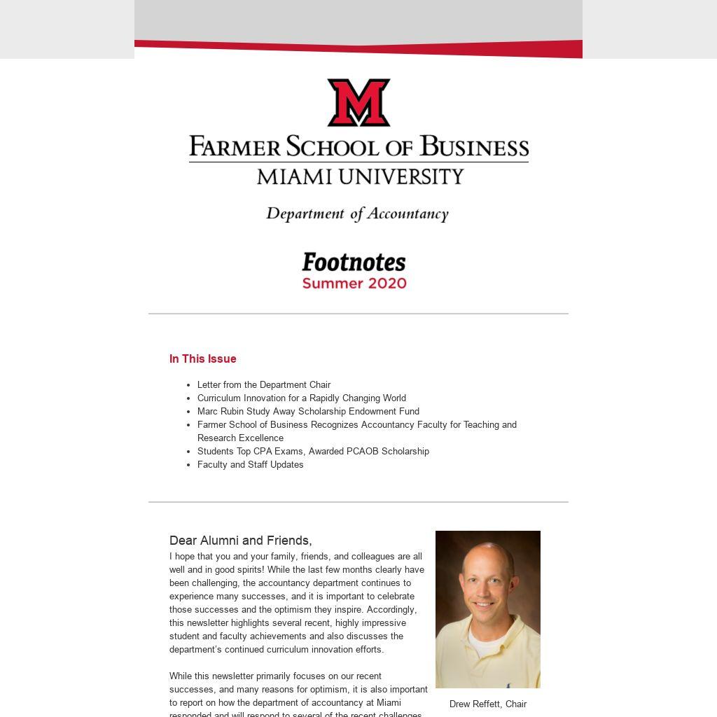 While this newsletter primarily focuses on our recent successes, and many reasons for optimism, it is also important to report on how the department of accountancy at Miami responded and will respond to several of the recent challenges that have impacted us all.