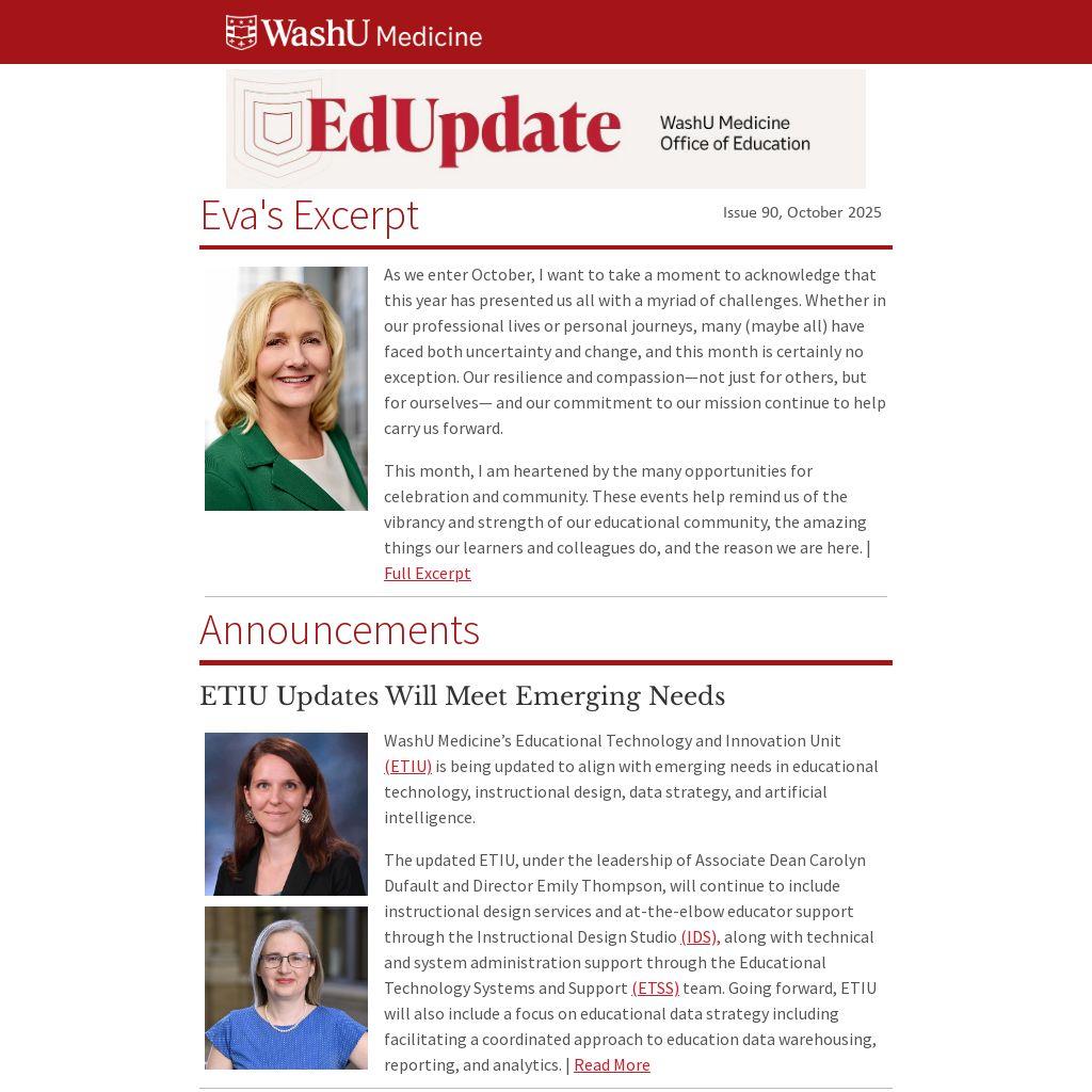 WashU Medicine’s Educational Technology and Innovation Unit (ETIU) is being updated to align with emerging needs in educational technology, instructional design, data strategy, and artificial intelligence.