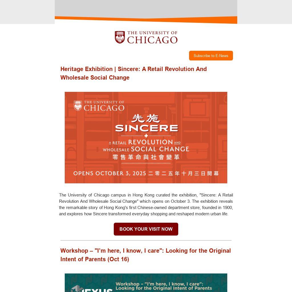 The University of Chicago campus in Hong Kong curated the exhibition, "Sincere: A Retail Revolution And Wholesale Social Change" which opens on October 3. The exhibition reveals the remarkable story of Hong Kong's first Chinese-owned department store, founded in 1900, and explores how Sincere transformed everyday shopping and reshaped modern urban life.