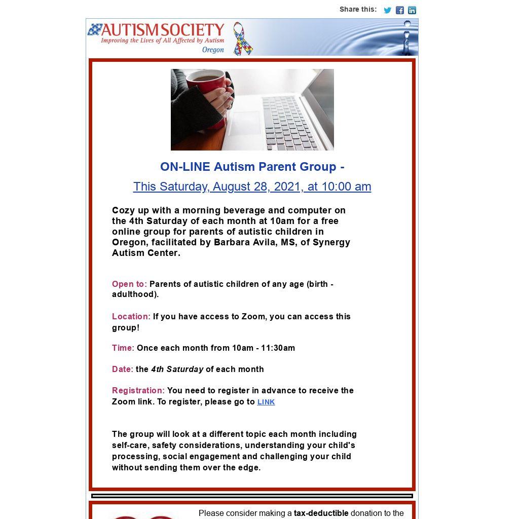 You can donate to ASO, without cost to you, just by making your reglar purchases. Enroll in the programs from Amazon Smile or Fred Meyer Community Rewards and pick ASO (search for "The Autism Society of Oregon") as your charity.