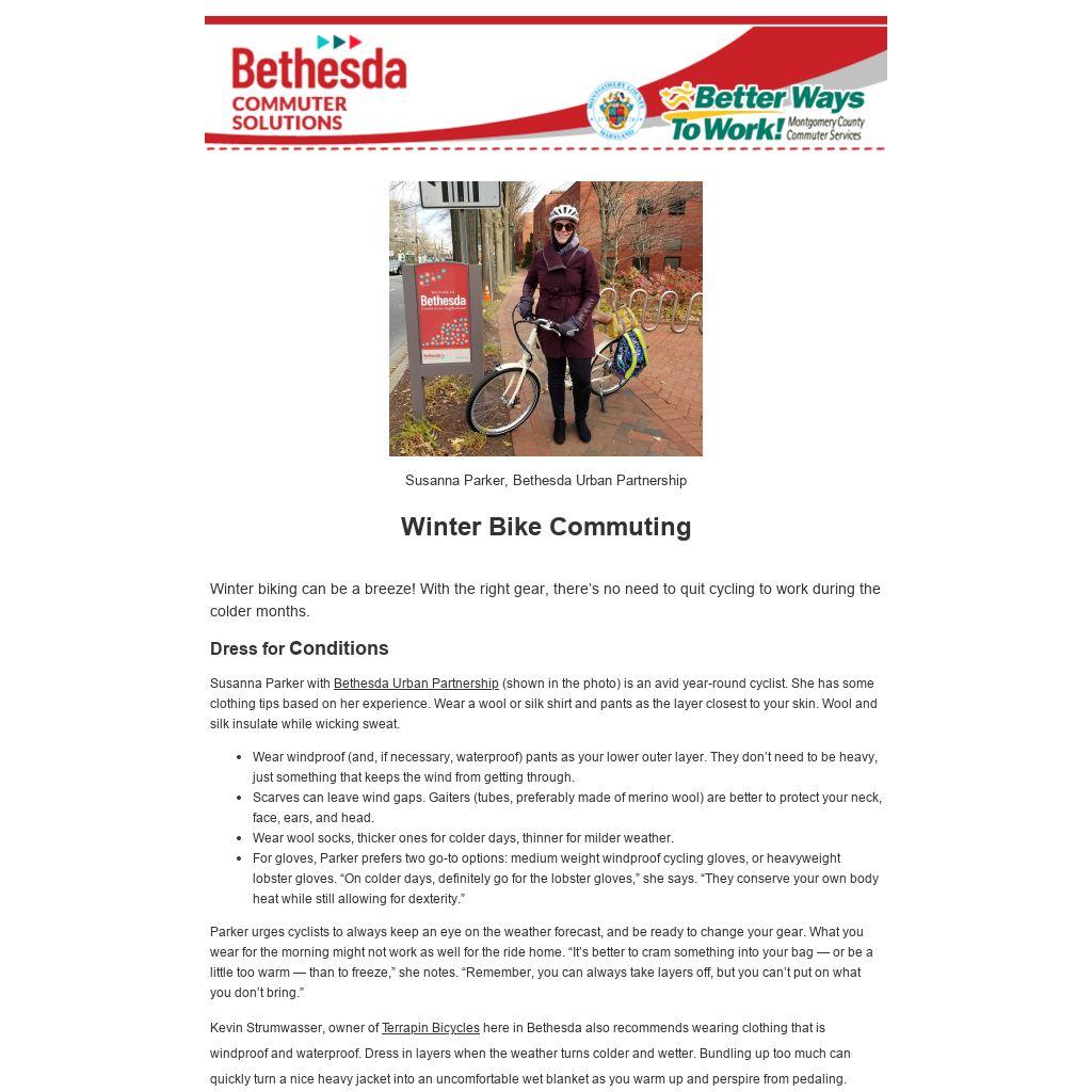 To enter the contest, snap a picture of your winter walking or biking around downtown Bethesda and send it to Bethesda Transportation Solutions.
