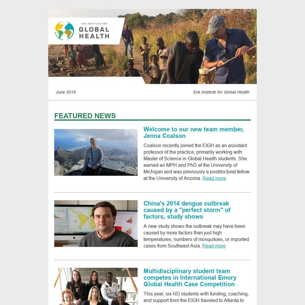 Coalson recently joined the EIGH as an assistant professor of the practice, primarily working with Master of Science in Global Health students. She earned an MPH and PhD at the University of Michigan and was previously a postdoctoral fellow at the University of Arizona. Read more