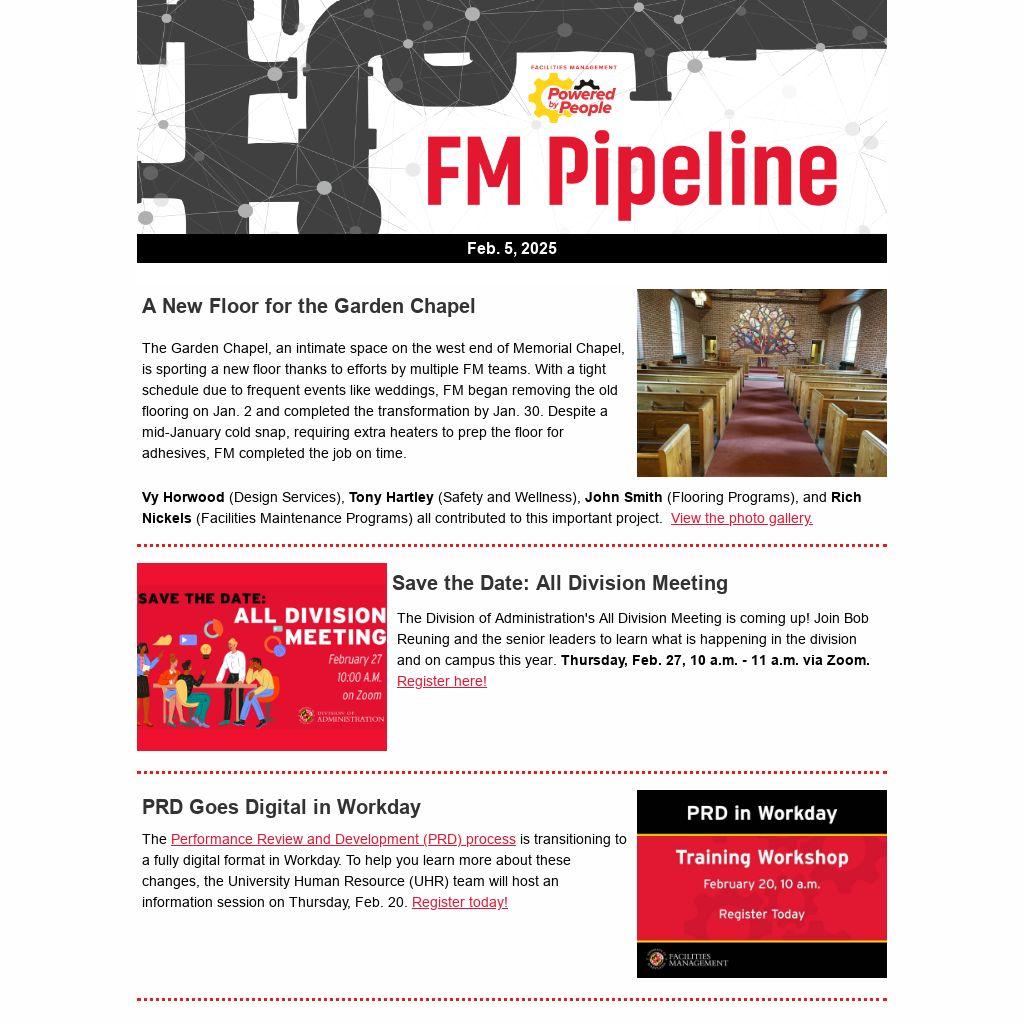 The Division of Administration's All Division Meeting is coming up! Join Bob Reuning and the senior leaders to learn what is happening in the division and on campus this year. Thursday, Feb. 27, 10 a.m. - 11 a.m. via Zoom.