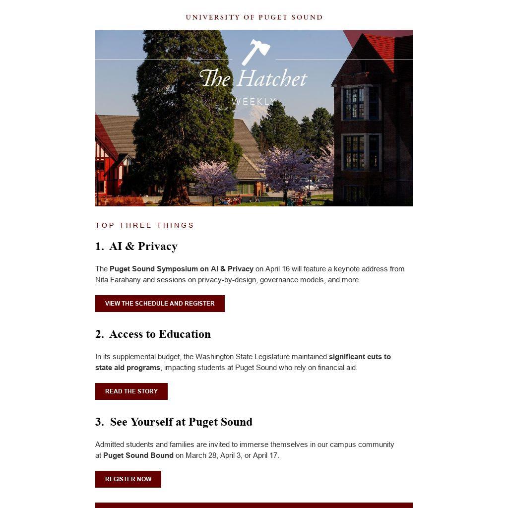 Admitted students and families are invited to immerse themselves in our campus community at Puget Sound Bound on March 28, April 3, or April 17.