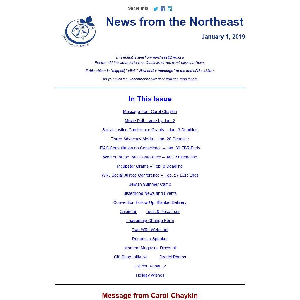 This eblast is sent from northeast@wrj.org.