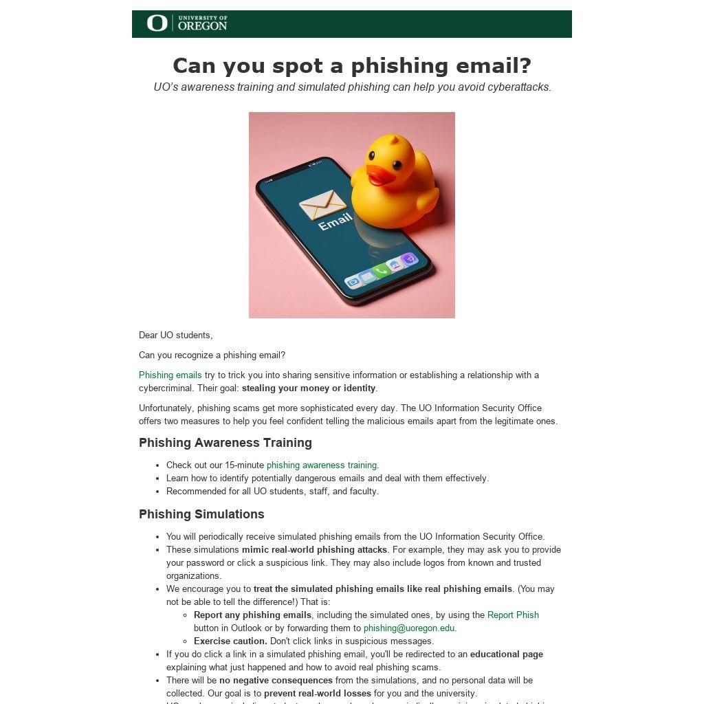 - UO employees, including student employees, have been periodically receiving simulated phishing emails since spring 2022.