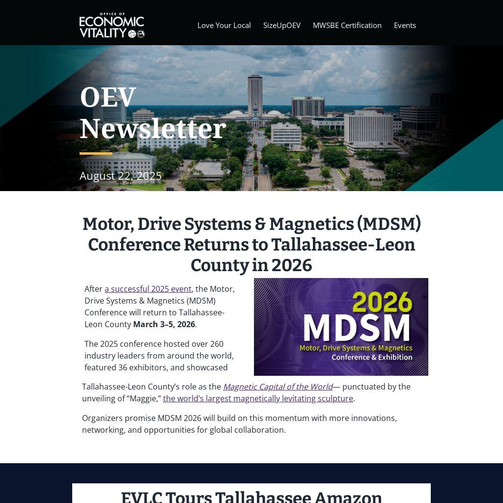 Delve into past issues of the OEV Newsletter to catch up on updates, insights, economic development initiatives, programs, and opportunities in Tallahassee-Leon County!