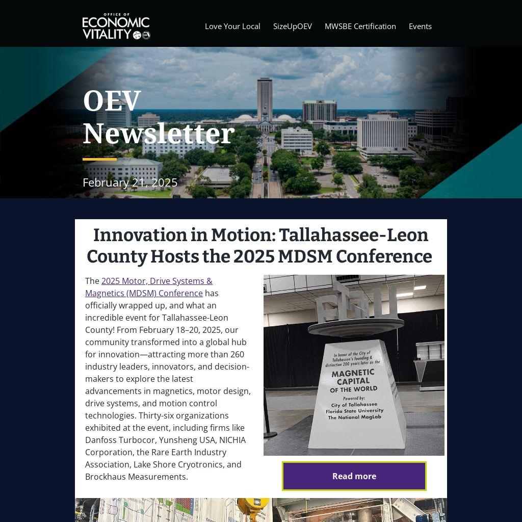 Delve into past issues of the OEV Newsletter to catch up on updates, insights, economic development initiatives, programs, and opportunities in Tallahassee-Leon County!