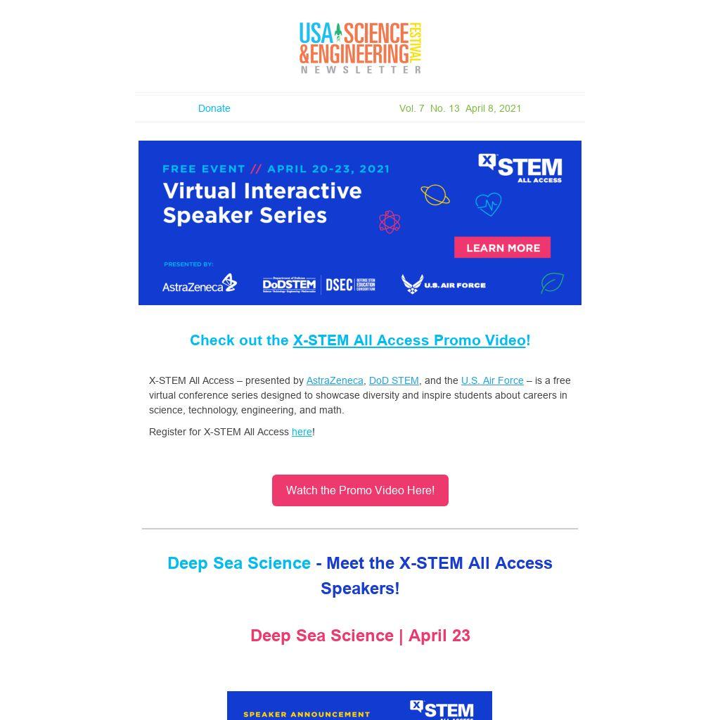 X-STEM All Access – presented by AstraZeneca, DoD STEM, and the U.S. Air Force – is a free virtual conference series designed to showcase diversity and inspire students about careers in science, technology, engineering, and math.